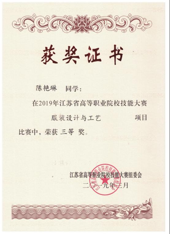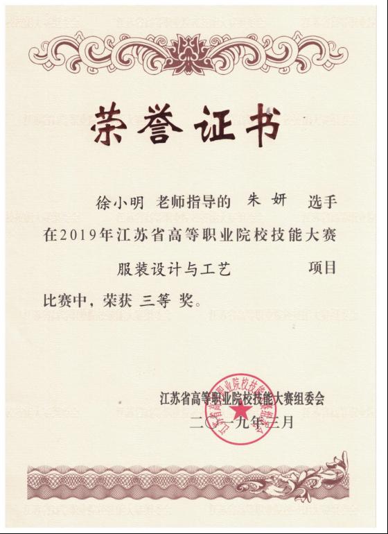 此次比赛是根据国赛的要求和标准,比赛内容主要包括服装理论模块、服装设计模块、服装制版与工艺模块。根据大赛规程每组的两名选手先参加理论考试,然后分别参加服装设计模块和服装制版与工艺模块,两人的比赛成绩计入总分。我系朱妍、陈艳琳两位同学通过近10小时的努力拼搏,获得了此次大赛“三等奖”。成绩不是来自偶然,这离不开学生的刻苦锻炼,老师的悉心指导,学校领导的关心。