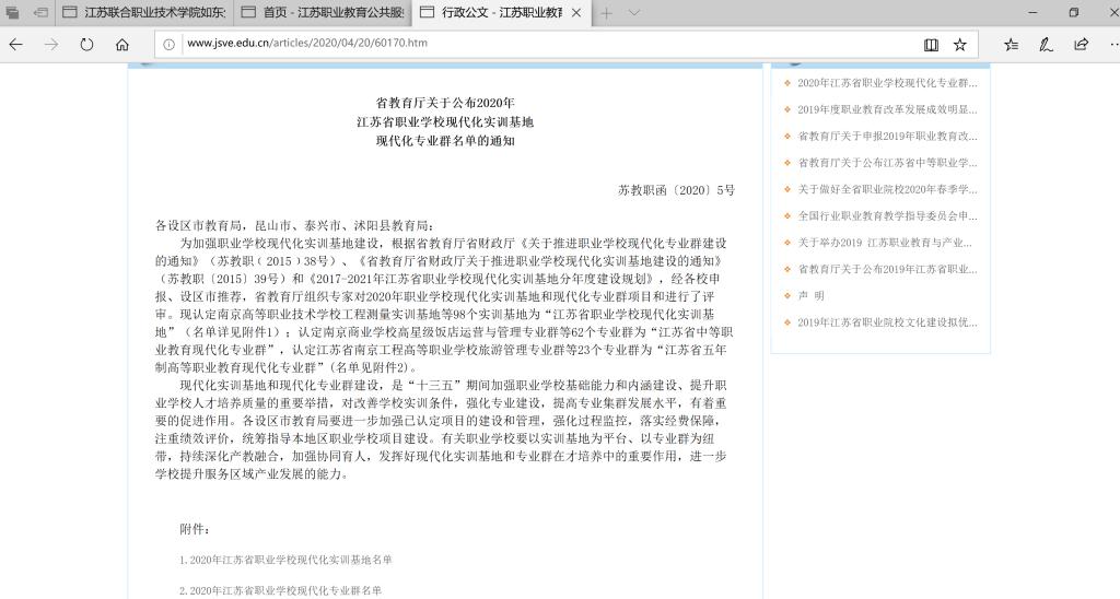 近日,省教育厅省财政厅公布了2020年江苏省职业学校现代化实训基地、现代化专业群认定结果。我校化工专业实训基地网评直接认定免于视导,被认定为 “江苏省职业学校现代化实训基地”。