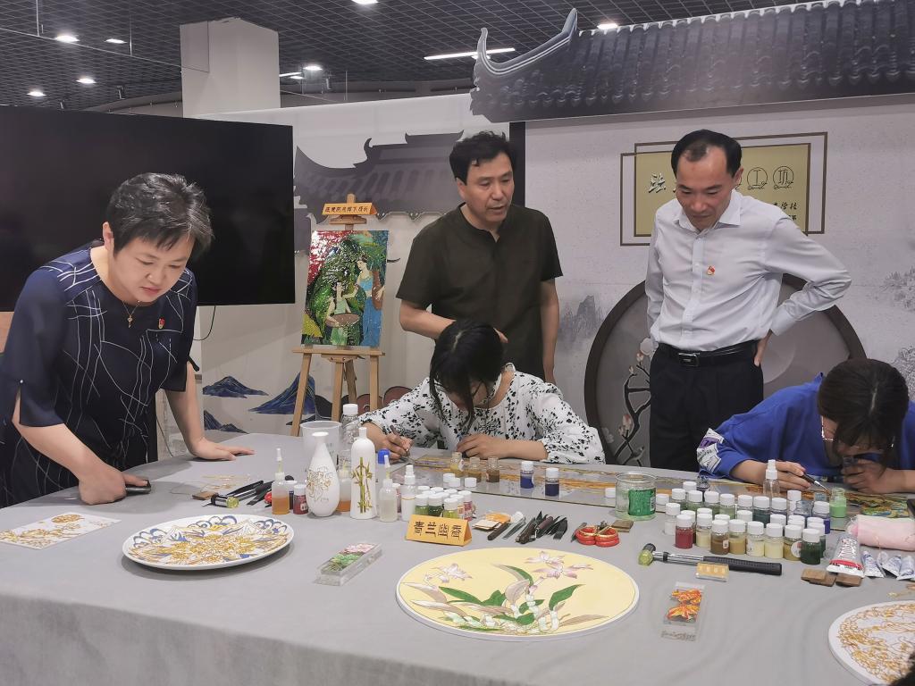 此次参加现场展演的艺术工作坊是从全县各个学校精选出的6个独具代表性和艺术性的项目。如东中等专业学校现代服务管理系的“珐琅彩手工坊”有幸入选。学生们在徐小明老师的指导下,从线稿-掐丝-点蓝-定型,将一幅幅作品精美呈现。原创作品“在党的阳光下成长”更是获得一致好评。展演现场,专家和观众一方面被精美作品折服,更为如东中专重视学生美育素养的提升、传统文化的厚植给予高度评价。