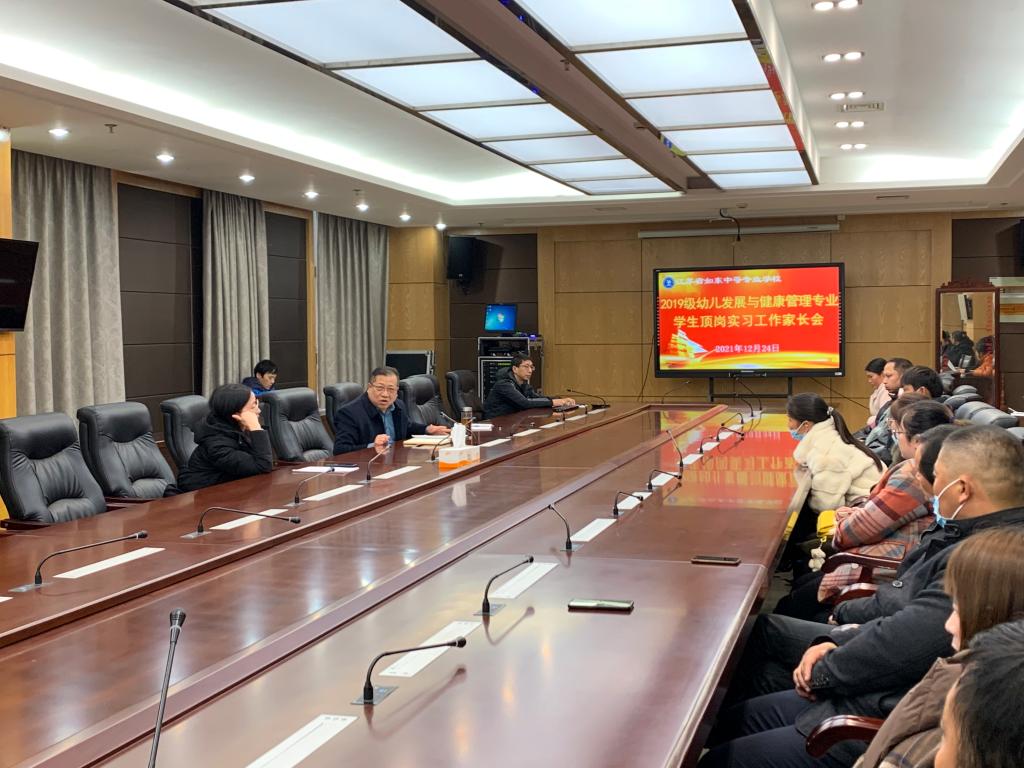 曹校长宣读了教育局《关于协调安排如东中专2019级学前教育职业中专班学生顶岗实习工作的通知》,也充分说明了教育局对此事的重视。
