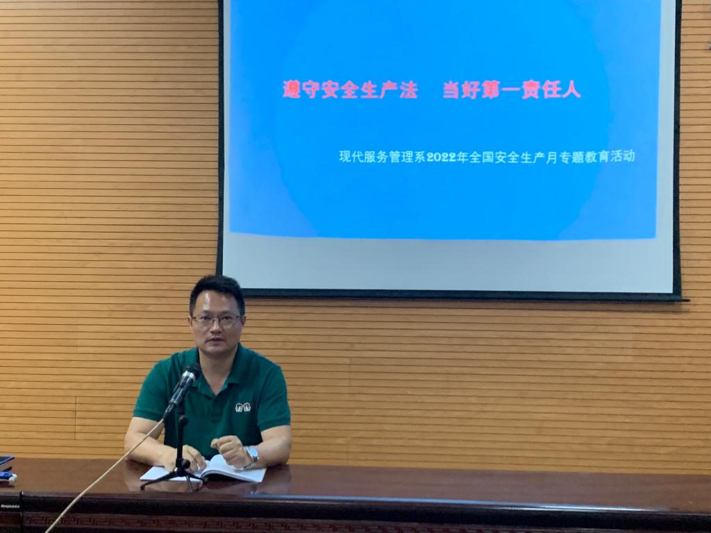 2022年6月12日,现代服务管理系召开“2022年全国安全生产月专题会议”,出席对象是系部主任、学生会主席及各部部长、各班班长、安全委员、心理委员。要求各班班长、安全委员把会议内容传达到每一位同学,做到一日一提醒。