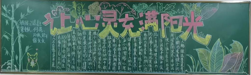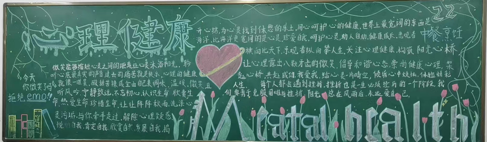 5月25日为全国大、中学生(包括中职学生)心理健康日,“525”的谐音即为“我爱我”,提醒大、中学生“珍惜生命,关爱自己”。为进一步在全校宣传普及心理健康常识,让师生关注自身心理健康,树立正确的心理健康观念,营造健康、和谐、良好的校园育人氛围,在校团委的组织下开展以“525心理健康”为主题的心理健康主题黑板报评比活动。